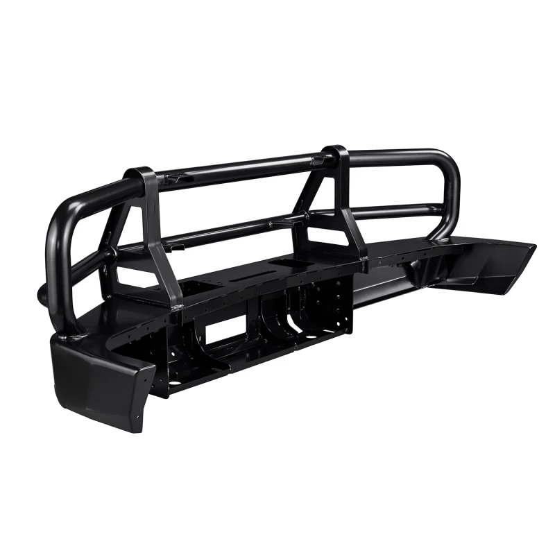 This heavy-duty bumper features a five-fold upswept and tapered wing design, durable steel construction, and provision for two CB aerials. With its recessed indicators, split pan design, and driving light provision, you'll be ready for anything the trail throws your way.