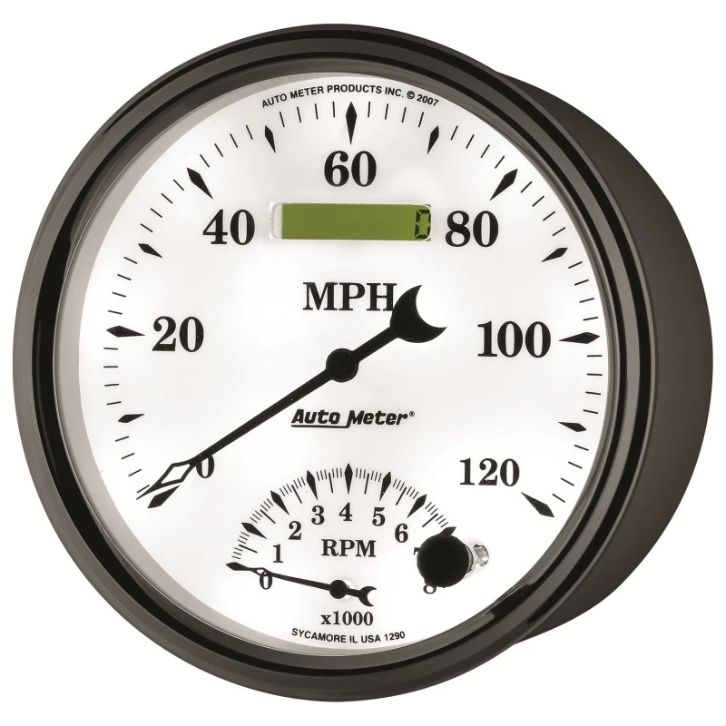 AutoMeter Gauge Tach/Speedo 5in. 120MPH & 8K RPM Elec. Program Old Tyme White II