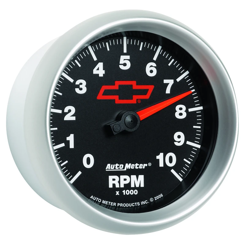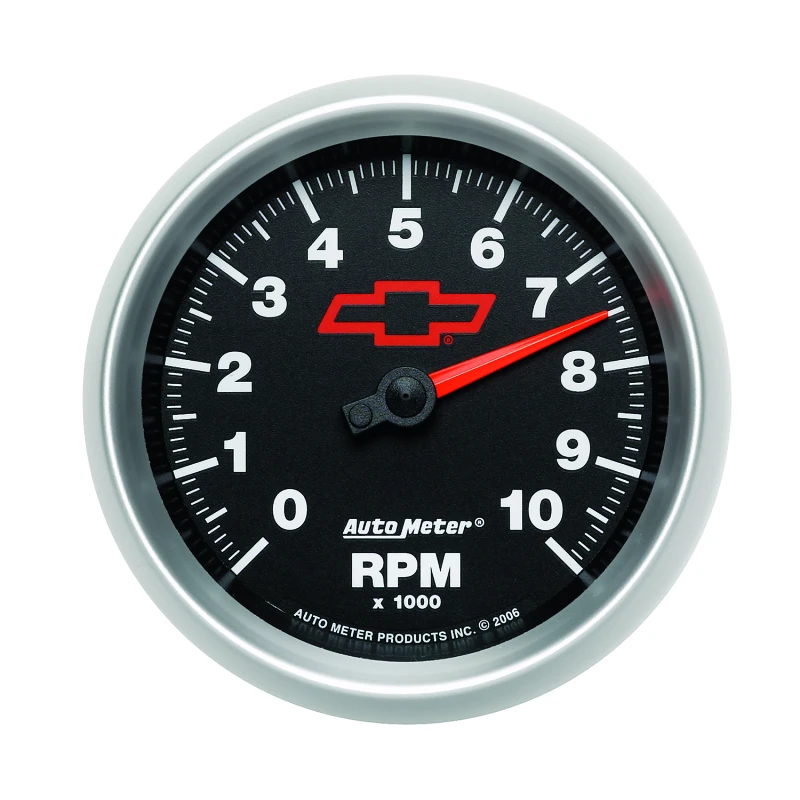AutoMeter Gauge Tachometer 3-3/8in. 10K RPM In-Dash Chevy Red Bowtie Black
