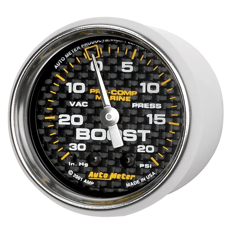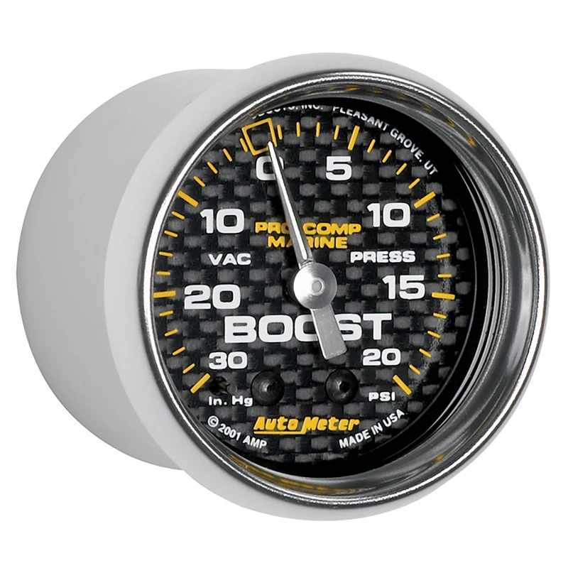Autometer Marine Carbon Fiber 2-1/16in 30INHG/20PSI Mechanical Vacuum/Boost Gauge