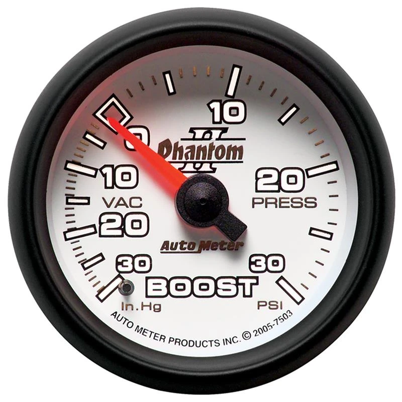 Autometer Phantom II 52.4mm Mechanical Vacuum / Boost Gauge 30 In. HG/30 PSI