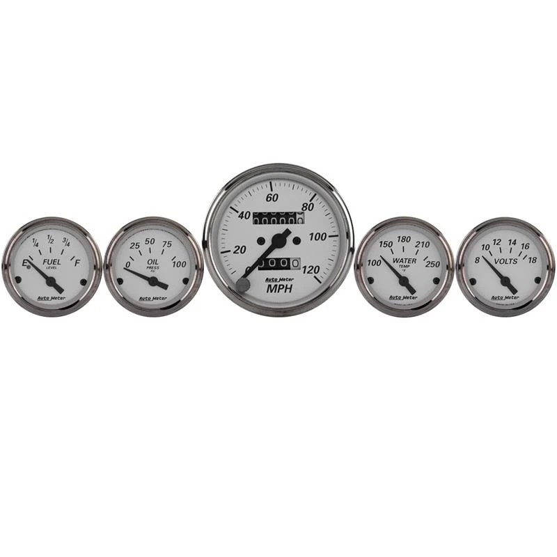 Autometer Silver 5 Pc Kit Box w/ Mech. Speedo / Elec Oil Press / Water Temp / Volt / Fuel Level