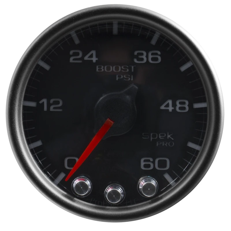 Autometer Spek-Pro Gauge Boost 2 1/16in 60psi Stepper Motor W/Peak & Warn Blk/Black