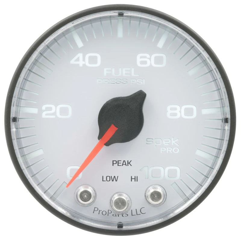 Autometer Spek-Pro Gauge Fuel Press 2 1/16in 100psi Stepper Motor W/Peak & Warn Wht/Blk