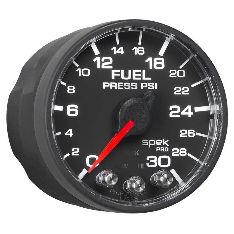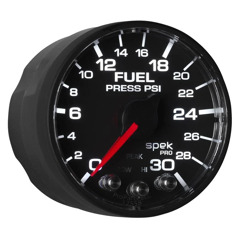 Autometer Spek-Pro Gauge Fuel Press 2 1/16in 30psi Stepper Motor W/Peak & Warn Blk/Blk