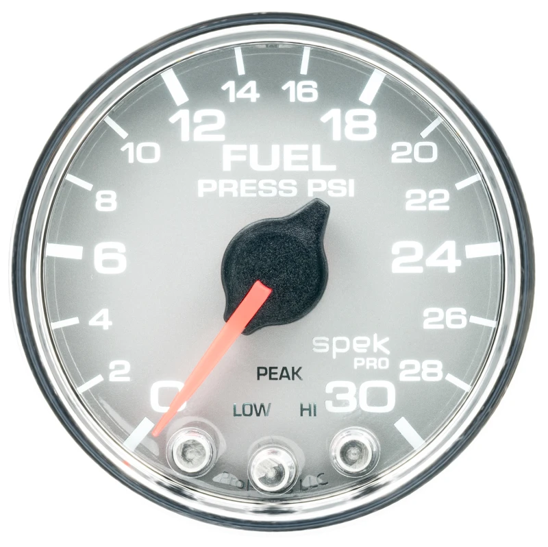 Autometer Spek-Pro Gauge Fuel Press 2 1/16in 30psi Stepper Motor W/Peak & Warn Slvr/Chrm