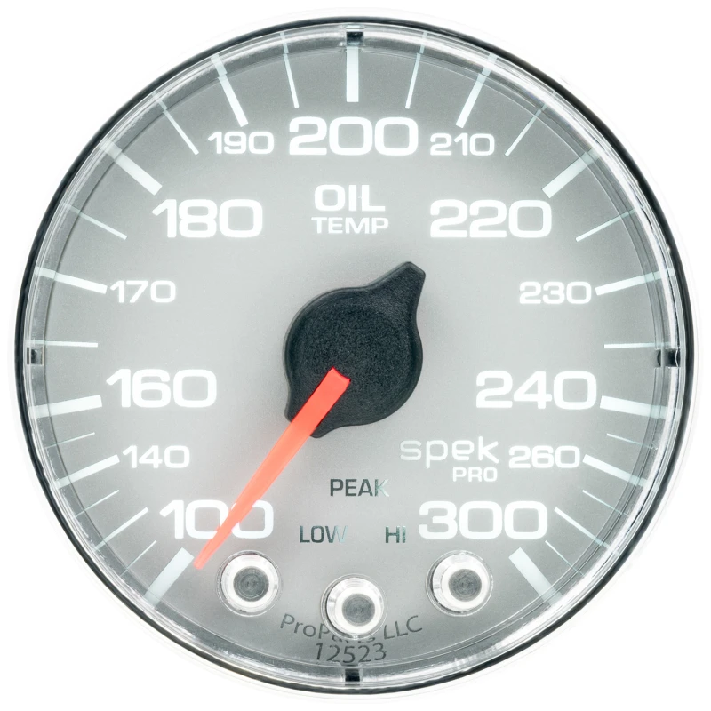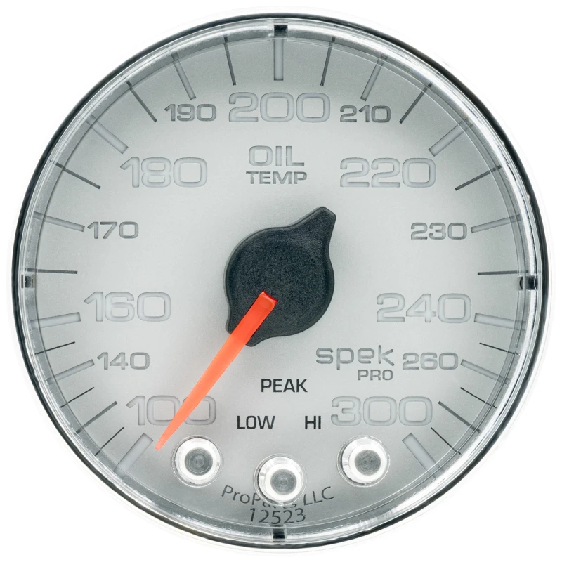 Autometer Spek-Pro Gauge Oil Temp 2 1/16in 300f Stepper Motor W/Peak & Warn Slvr/Chrm