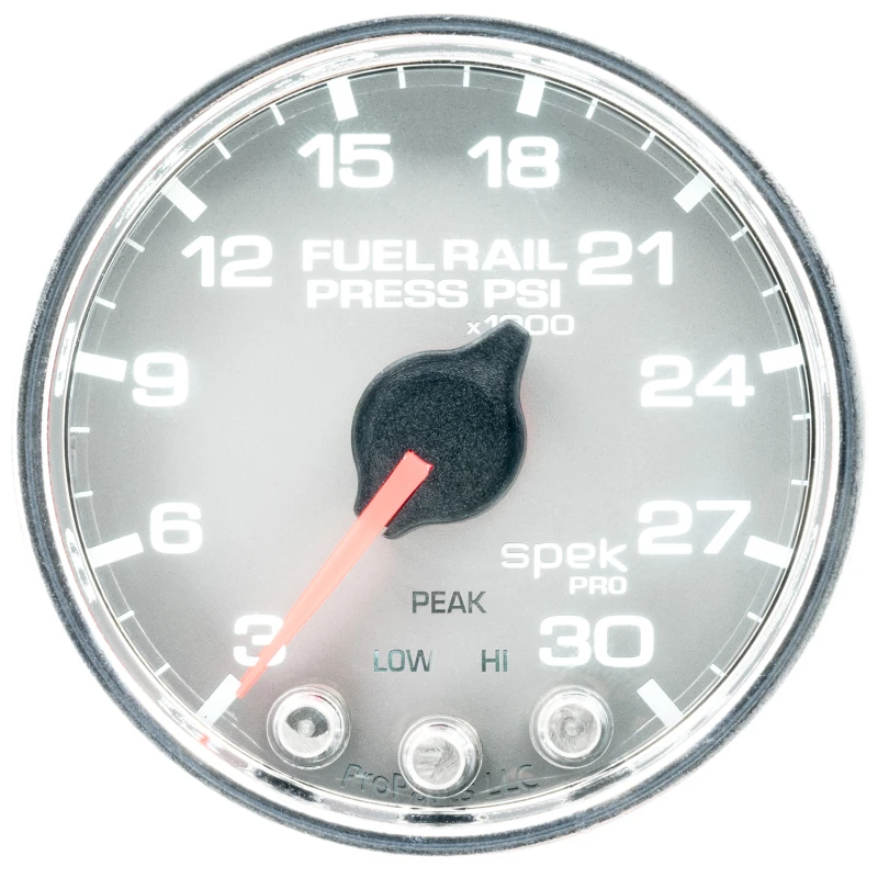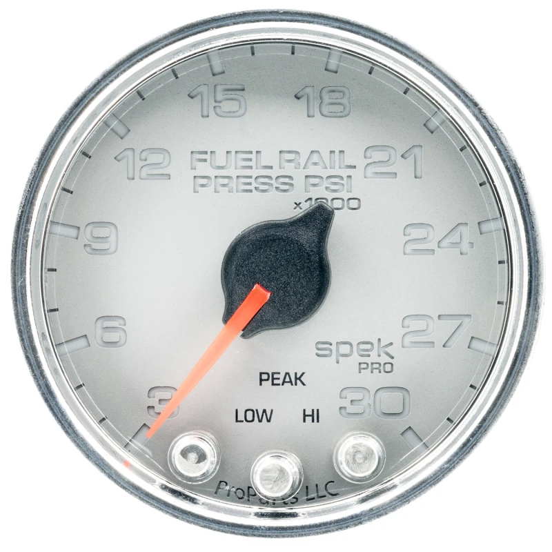 Autometer Spek-Pro Gauge Rail Press 2 1/16in 30Kpsi Stepper Motor W/Peak & Warn Slvr/Chrm