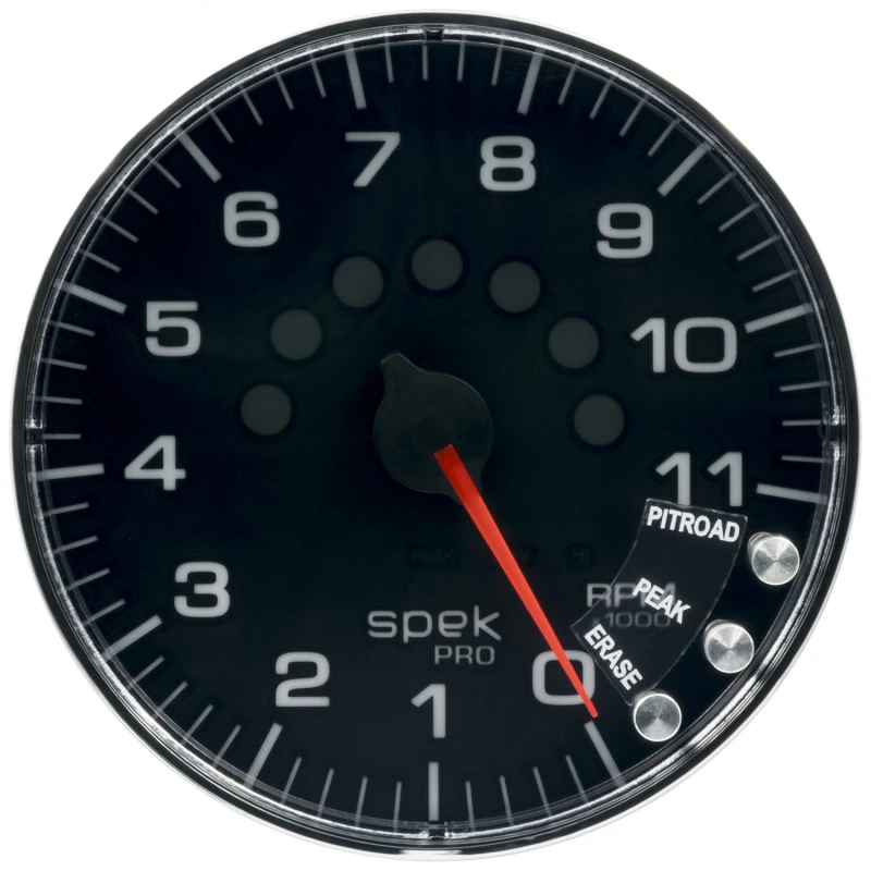 Autometer Spek-Pro Gauge Tachometer 5in 11K Rpm W/Shift Light & Peak Mem Black/Chrome