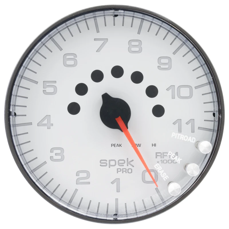 Autometer Spek-Pro Gauge Tachometer 5in 11K Rpm W/Shift Light & Peak Mem White/Black