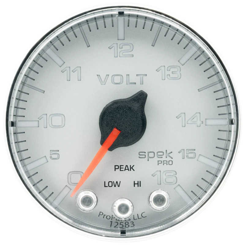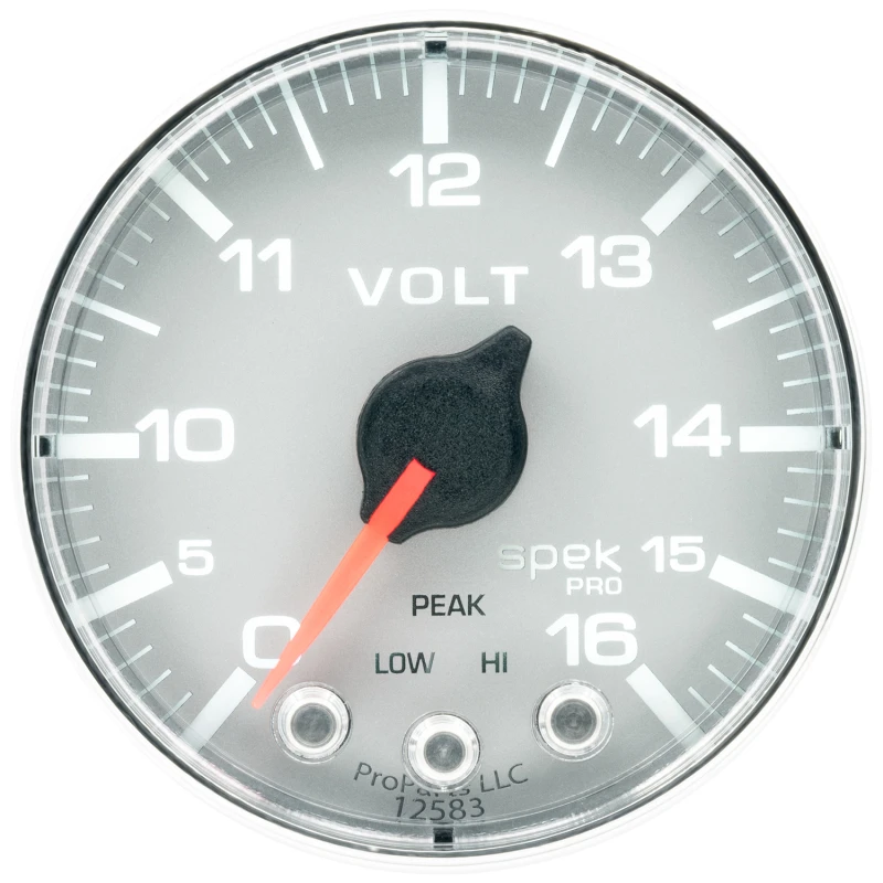 Autometer Spek-Pro Gauge Voltmeter 2 1/16in 16V Stepper Motor W/Peak & Warn Slvr/Chrm