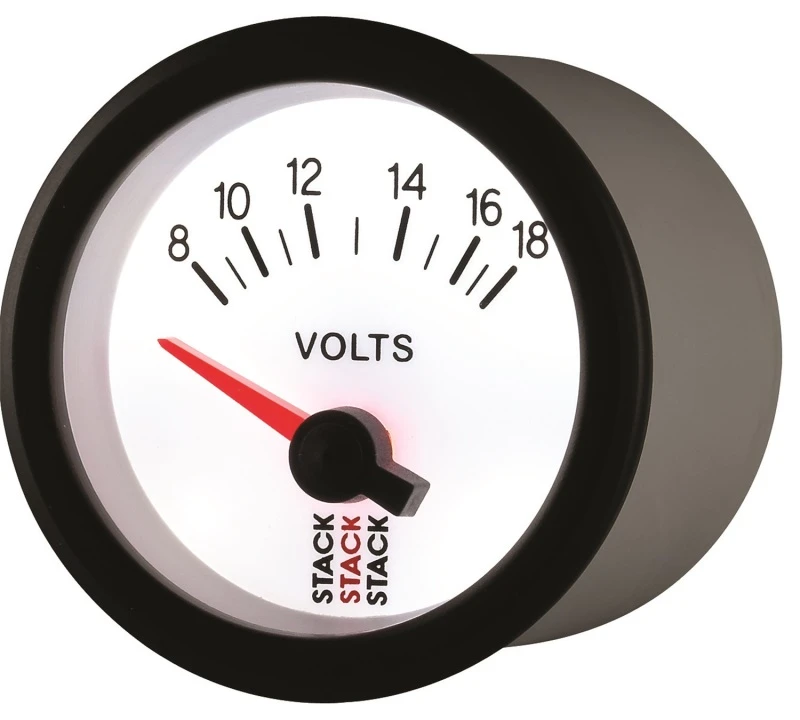 Autometer Stack 52mm 8-18V Electric Battery Voltage Gauge - White