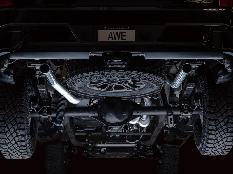 AWE Tuning 22-23 GMC Sierra 1500 AT4X 6.2L 0FG Catback Split Dual (Flat Bumper) - Bashguard(No Tips)