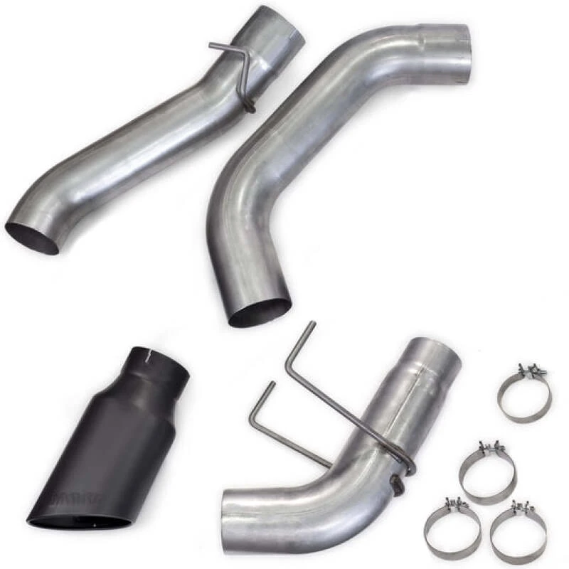 The system includes a huge black Cerakote obround SideKick tip, allowing the engine to breathe more efficiently. With its massive 6.5-inch x 7.5-inch ob-round slash-cut exhaust tip, this exhaust system is designed to virtually eliminate backpressure after the DPF.