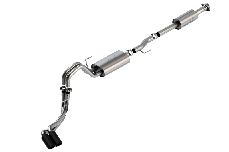 Take your Ford F-150 to the next level with the Borla Cat-Back system. Designed to enhance power and sound, this system features black chromed T-304 stainless steel tips and a dual side exit configuration.