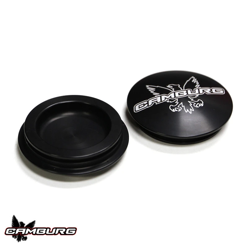 Designed for Camburg X-joint upper control arms, these caps protect the X-joint or Moog ball-joint with an O-ring seal and press fit. They are machined from 6061-T6 billet aluminum, anodized black, and feature the Camburg logo. For precise fitment, measure the existing cap or machined cup diameter.