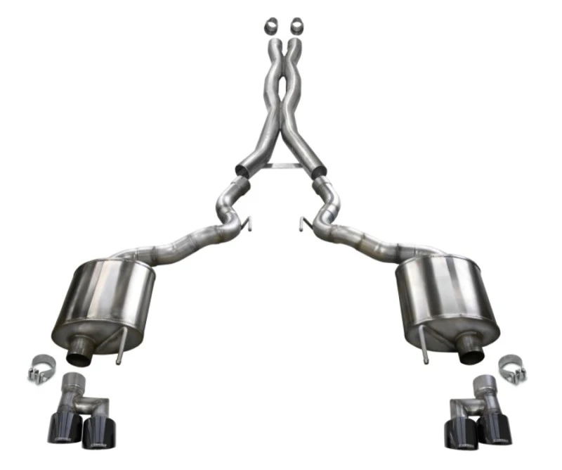Unlock the full potential of your Ford Mustang GT Convertible with the Corsa Sport Cat-Back exhaust system. Featuring patented Reflective Sound Cancellation (RSC) technology, this system delivers an aggressive sound under acceleration and a drone-free experience during cruise.