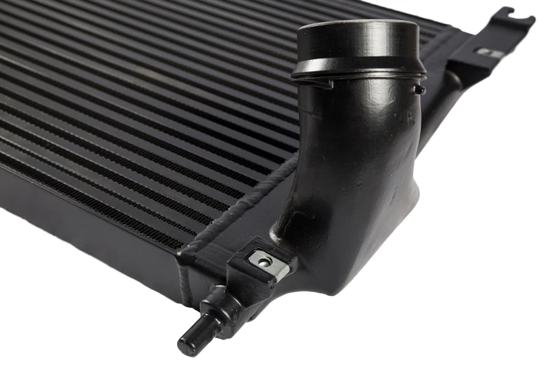 With its precise "Quick-Connect" inlet/outlet connections and pressure-tested construction, this intercooler is a true "drop-in fit" installation that requires no modifications. Plus, its thermal rejection powder-coating finish provides up to 15% improvement in heat dissipation over non-coated intercoolers.