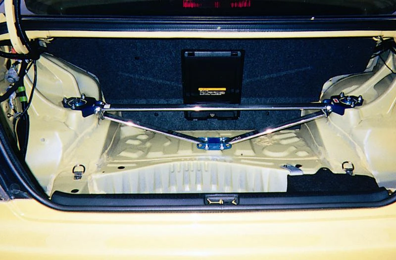 Enhance your vehicle's performance with the Cusco Strut Bar, designed specifically for the 2001-2005 Lexus IS300. This bar transforms the rear Type OS into a 3-point support system, integrating the floorboard for added stability and improved handling.
