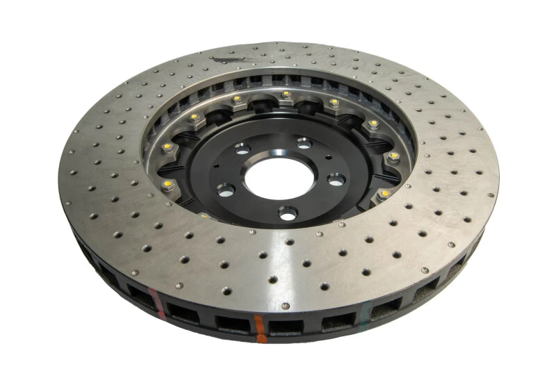 Featuring a unique composite 2-piece design, this rotor combines high carbon cast-iron rings with aerospace-grade aluminum hats (T6061-T6), held together with National Aerospace Standards (NAS) bolts and crimp nuts. This design allows for improved heat management, reduced unsprung weight, and uniform radial disc expansion.