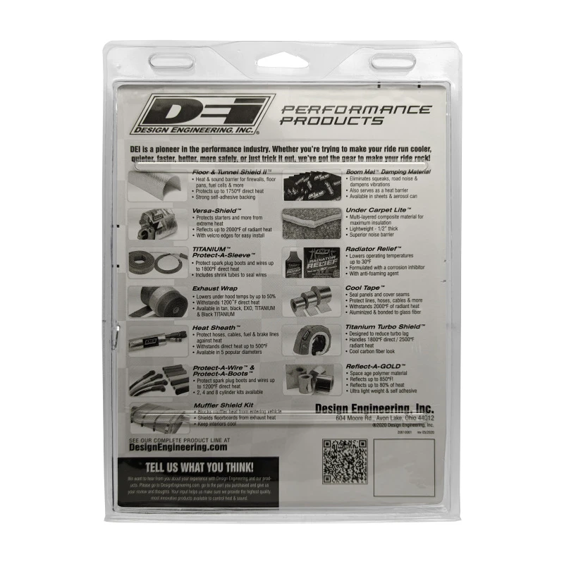 Protect your vehicle's interior and components from heat intrusion with DEI's Reflect-A-Cool heat tape. This 12in x 24in sheet is constructed of fiberglass material backed with a layer of aluminized reflective foil, capable of handling direct continuous temperatures of 400°F.
