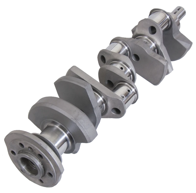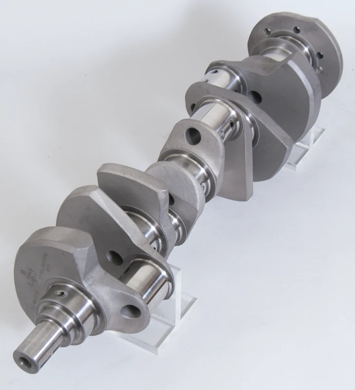 This Eagle forged 4340 steel crankshaft is designed for Chevrolet Small Block engines with a 3.500 inch stroke and 2.000 inch rod journals. Featuring a non-twist forging and lightweight counterweight design, it reduces rotating mass for enhanced engine responsiveness. The crankshaft has .125 inch fillet radiuses for superior strength, requiring chamfered or narrowed bearings. Its nitrided surface and micropolished finish provide durability and smooth operation, making it ideal for restricted-class competition use.