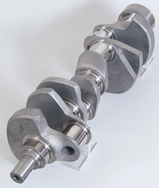 This Eagle forged 4340 steel crankshaft is engineered for Chevrolet 350 engines, featuring a 3.875-inch stroke and a one-piece rear seal design. Manufactured from non-twist forged 4340 steel, it offers superior strength with .125" fillet radiuses on all journals, requiring chamfered or narrowed bearings for proper fitment. The crankshaft undergoes multi-stage heat treatment, nitriding, and micropolishing to enhance durability and bearing life, making it ideal for demanding high-performance applications.