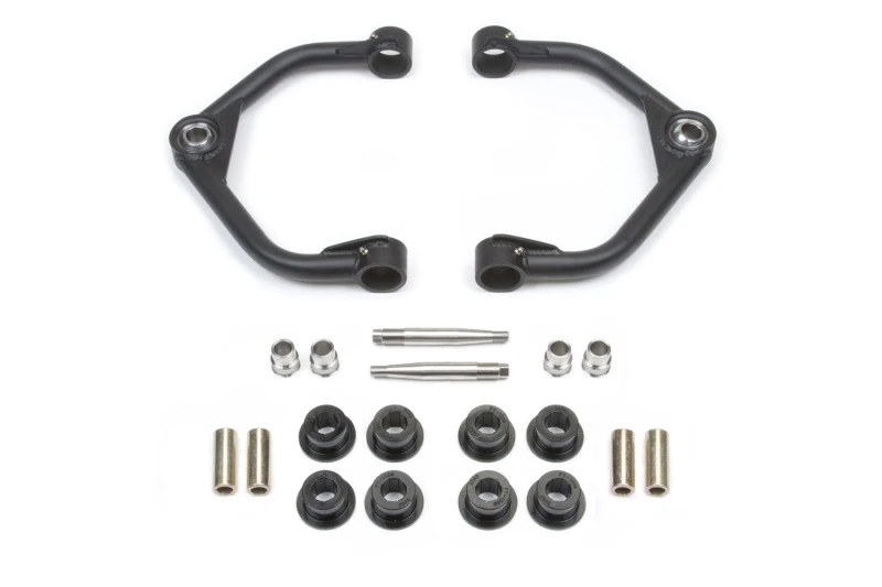 Upgrade your Ram 1500's suspension with Fabtech's Uniball Upper Control Arm Kit. Designed for 0-6in lifts, this kit eliminates the upper ball joint with a super-strong 1in ID stainless American Uniball. Additional caster is built into the arms for greater alignability, helping to solve problematic leveling kit alignments.