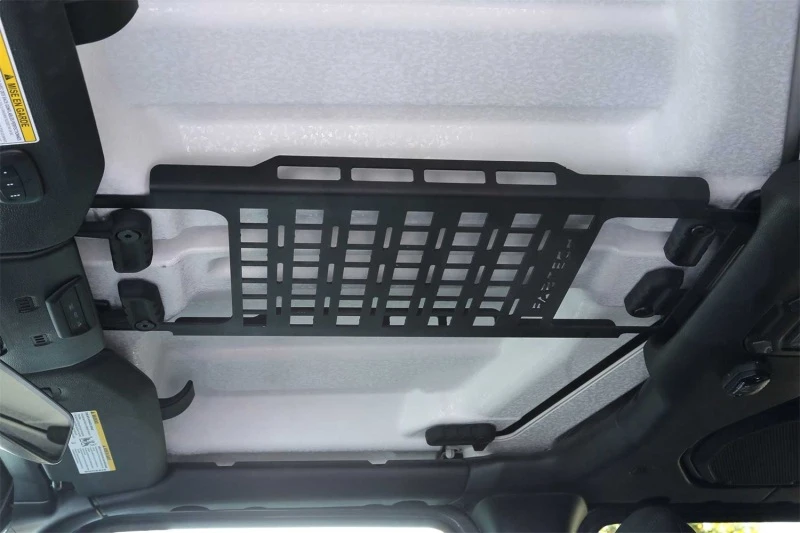 Are you tired of limited storage space in your Jeep Wrangler or Gladiator? Look no further! The Fabtech Overhead Molle Rack is here to revolutionize your interior storage game. This one-piece design bolts to the windshield frame and rear sport bar, providing a sturdy and convenient place to stash your gear.