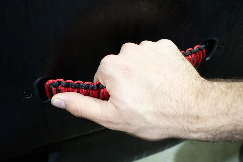Upgrade your Jeep Wrangler TJ with Fishbone Offroad’s premium paracord door handles, designed to deliver both rugged durability and a distinctive off-road aesthetic. These handles are crafted in the USA using heavy-duty 550lb paracord, ensuring reliable performance in all conditions. The black and red color scheme adds a bold, sporty touch to your Jeep’s interior, while the factory-style fitment ensures seamless integration with your TJ Wrangler doors.