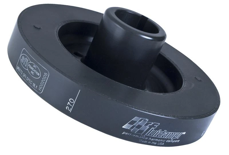 Fluidampr manufactures performance harmonic balancers for both domestic and sport compact vehicles. Unlike traditional elastomer balancers, Fluidampr performance dampers become more effective at higher RPMs. Fluidampr’s unique design uses a viscous silicone material between the inertia ring and outer housing. Not only does this create a more effective damper at high RPM’s, but it also reduces rotational mass because the inertia ring is not directly connected to the crankshaft. That’s why top engine race builders prefer viscous dampers like Fluidampr.