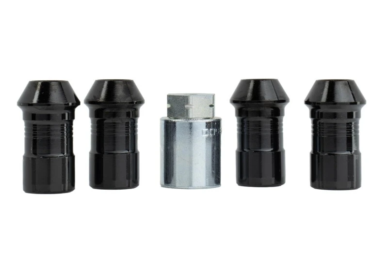 Upgrade your wheel security with the Ford Racing M14 x 1.5 Black Security Lug Nut Kit. This kit includes 4 security lug nuts and a key, providing a perfect solution for use with Ford Racing wheels.