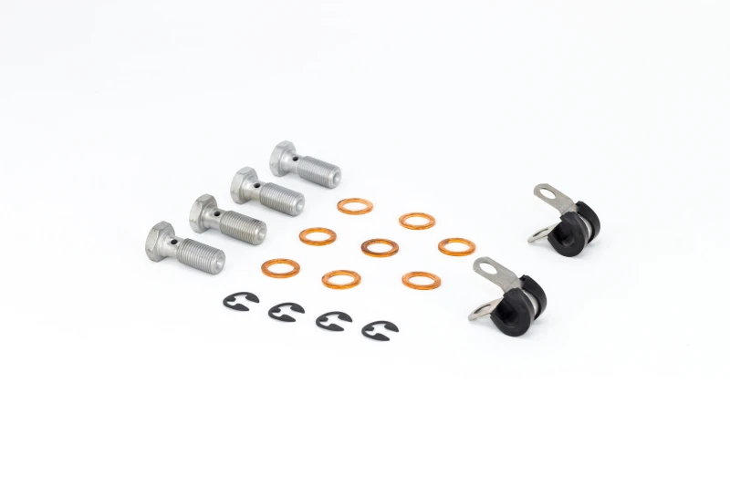 - Includes 2 Front Lines, 2 Rear Lines, Adapters, Banjo Bolts, Washers, and Line Locators