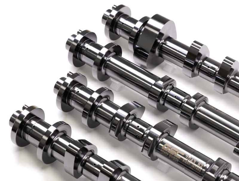 The GSC Power Division Billet S2 camshaft set is engineered for the Nissan/Infiniti VR30DDTT engine found in models such as the 2016-2023+ 400Z, Q50, and Q60. These forged billet camshafts feature proprietary billet cores manufactured in-house, delivering superior strength, reduced weight, and enhanced fatigue and wear resistance compared to OEM components. Precision CNC machining and grinding, combined with gun drilling down the cam center, ensure optimal oil delivery and weight reduction for maximum durability and performance.