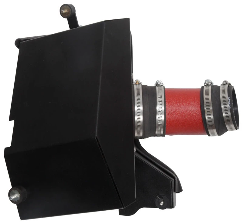 The 69-1505TWR air intake comes with a black rubber topped K&N high-flow air filter and a heat shield that installs into the original air box space. The intake tube has an attractive red textured powder-coated finish that's made to last and accommodates the factory mass air sensor.