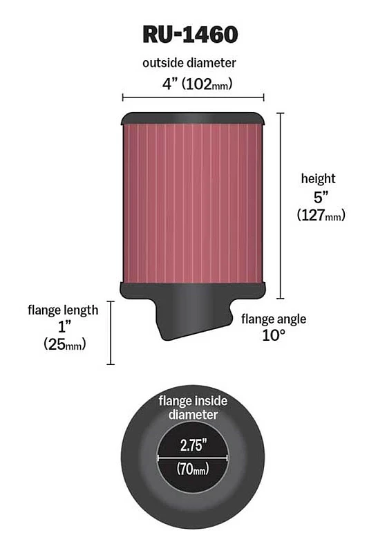 K&N Filter Universal Rubber Filter 2 3/4 inch 10 Degree Flange 4 inch OD 5 inch Height