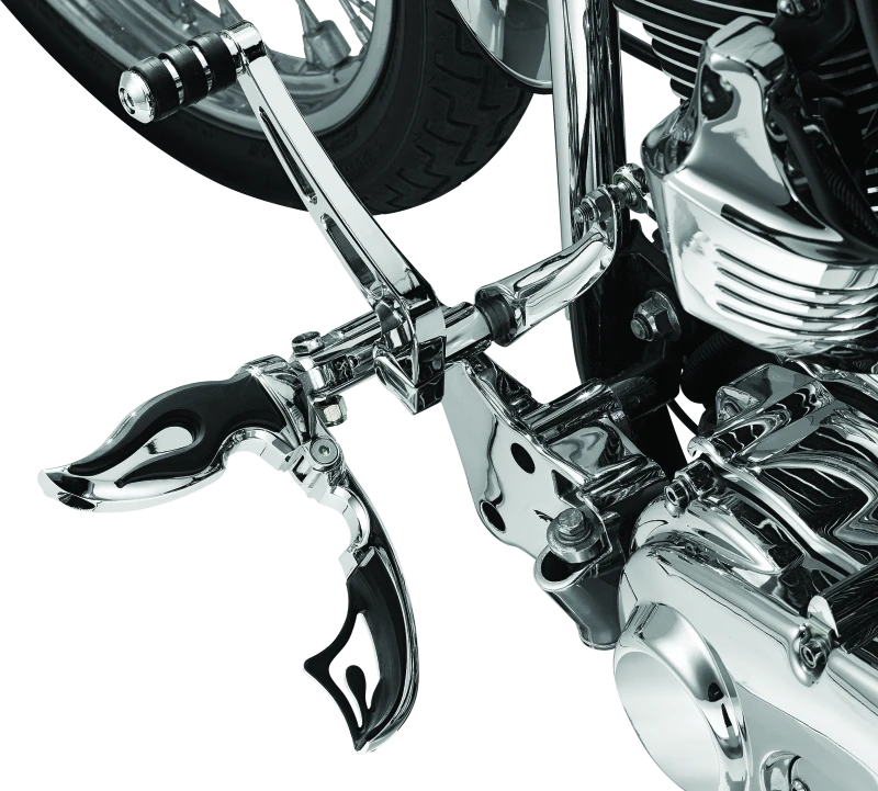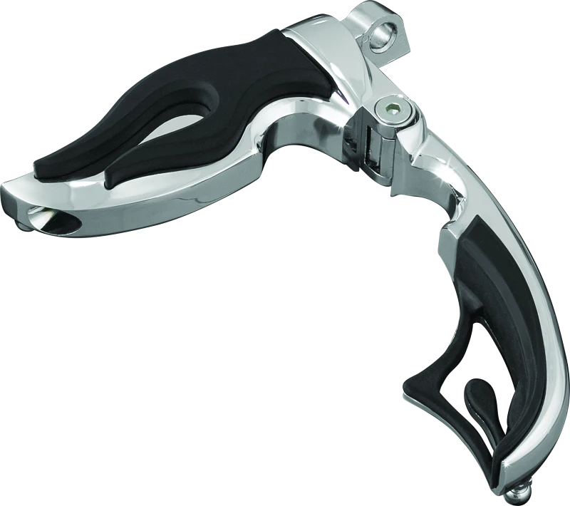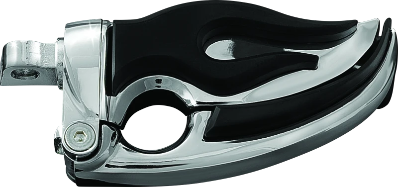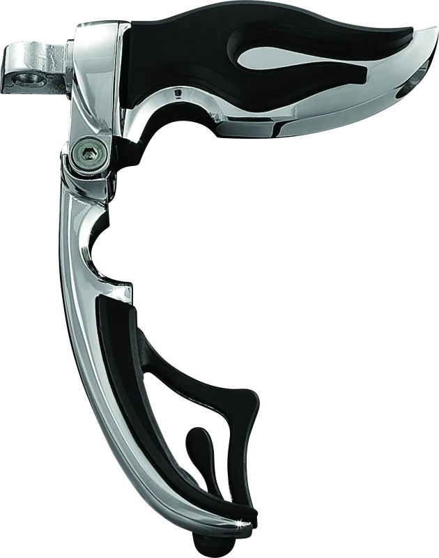 The Kuryakyn Flamin Switchblade Footpegs with Male Mount Adapter offer a unique blend of style and functionality for motorcycle riders seeking both comfort and a bold aesthetic. Featuring a flame-inspired design, these footpegs are crafted from tough die-cast zinc and finished with a durable chrome plating that resists corrosion and wear.