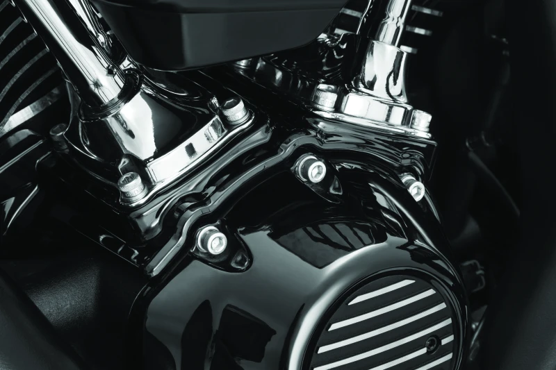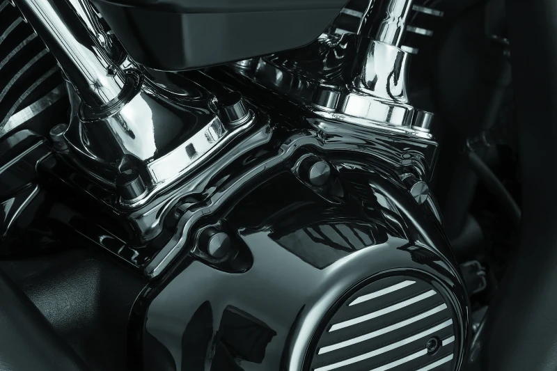 The Kuryakyn Kool Kaps Engine Kit provides a sleek, finished look by covering unsightly and unfinished bolt heads on Milwaukee-Eight engines. This gloss black kit is designed specifically for the Milwaukee-Eight engine series, enhancing engine aesthetics with a smooth, uniform appearance.