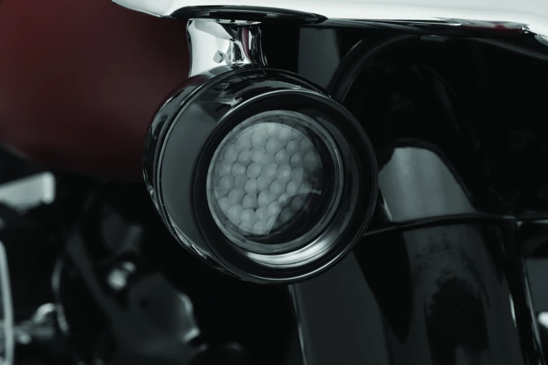 The Kuryakyn Luminez L.E.D. Front Turn Signal Insert offers a high-output, plug-and-play upgrade for converting stock Harley-Davidson turn signals to LED technology. Featuring a sleek flat circuit board design with molded polycarbonate lenses, these inserts provide crisp, intense amber illumination for enhanced visibility and a distinctive look.