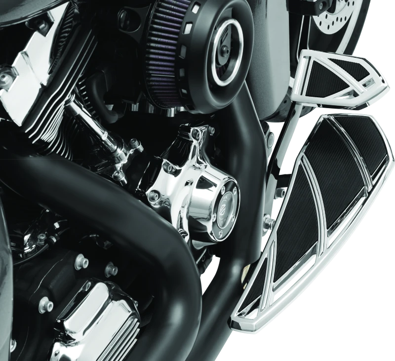 The Kuryakyn Phantom Floorboards combine quality aluminum with premium EPDM rubber, creating a solid foundation for stability, traction, and vibration-dampening comfort. Featuring sharp lines and angular styling, these floorboards provide ample foot placement options while maintaining an aggressive, streamlined look.