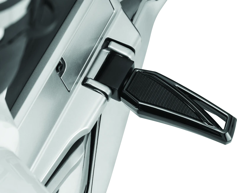 The Kuryakyn Phantom Footpegs offer a modern and aggressive design with sharp sculpted lines, crafted from high-quality A380 aluminum. These footpegs feature premium EPDM rubber pads that provide excellent traction, vibration dampening, and long-lasting durability without hardening or cracking, ensuring rider comfort and stability.
