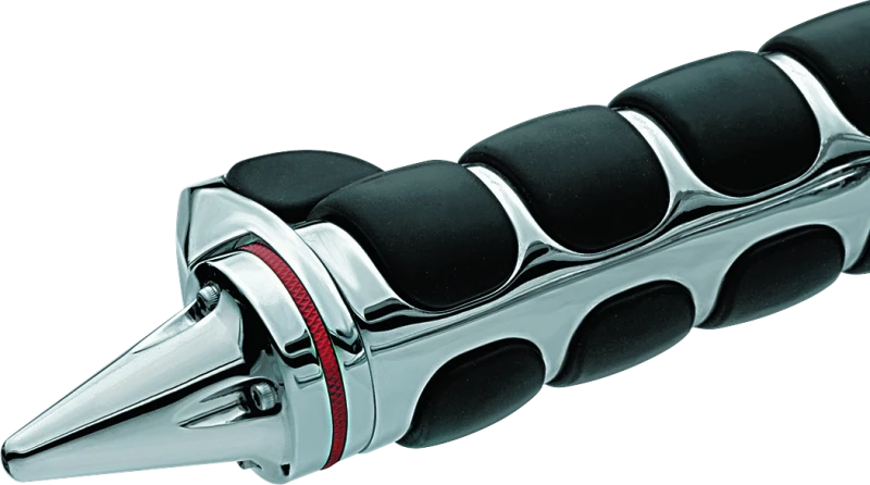 These Stiletto End Caps in chrome finish are designed to replace the existing end caps on Kuryakyn ISO®, ISO®-Flame, Spear, or Transformer grips, offering a bold and aggressive styling upgrade for your motorcycle controls.