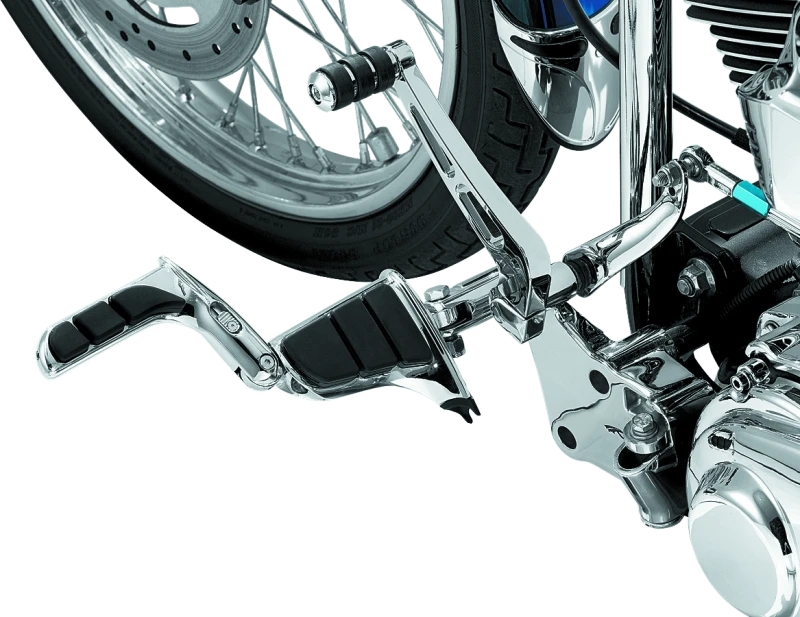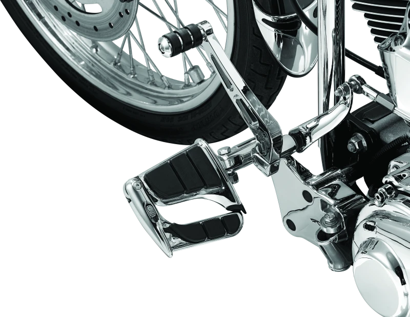 The Kuryakyn Swingwing Peg with Male Mount Adapter offers a versatile and comfortable cruising footpeg solution. Designed to replace your stock peg, it features a convenient fold-forward mechanism and a secondary fold-out peg that extends 3 inches forward, enhancing rider comfort and control.