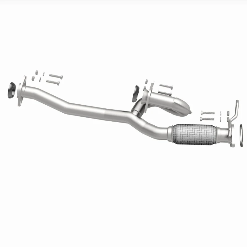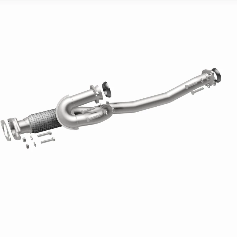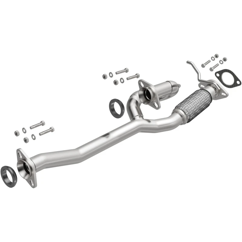 The kit includes a gasket for a secure seal but does not include clamps. It is engineered to meet or exceed OEM specifications, providing an efficient exhaust flow and restoring factory exhaust sound and power characteristics.