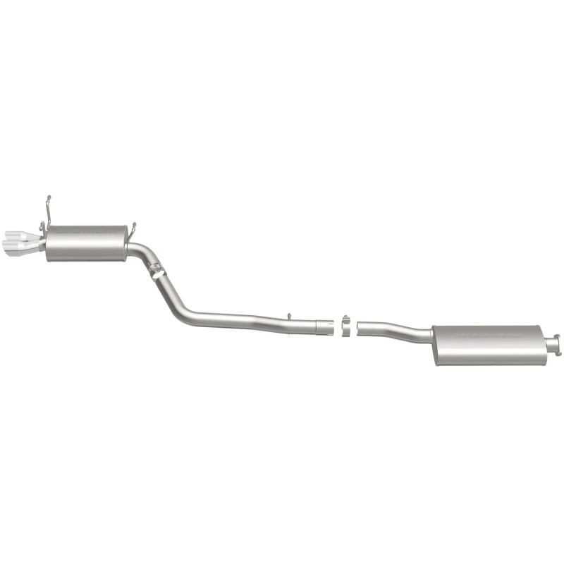 Featuring mandrel-bent 2.5in main piping and 2 Straight-Through mufflers, this exhaust system is engineered to provide a smooth, deep sound and improved performance. The dual rear exit design with 3in polished welded-double wall-angle cut-folded edge tips adds a sporty touch to your vehicle's appearance.