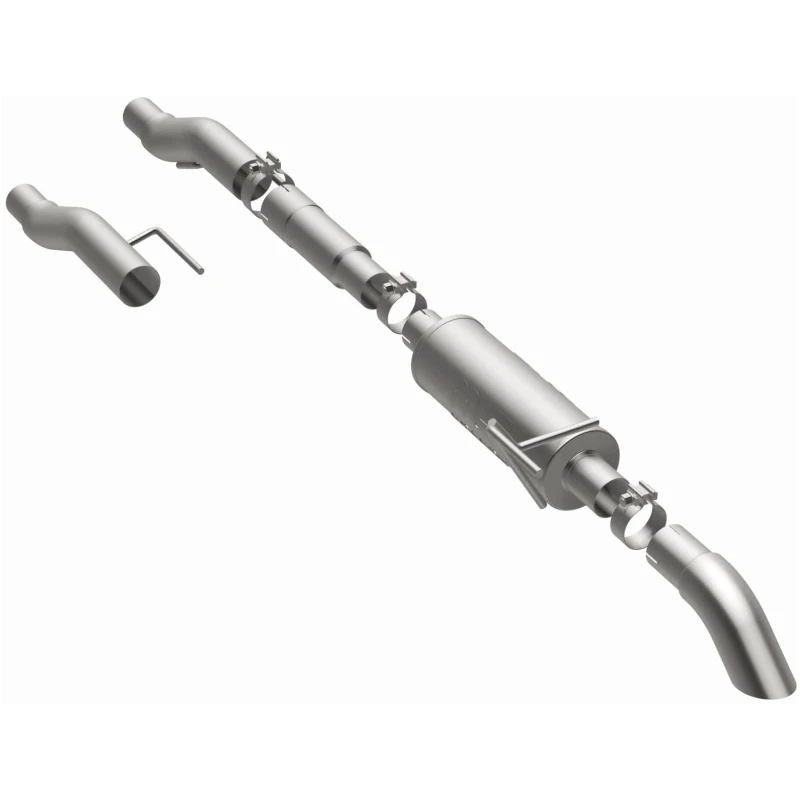 With its weight-optimized, dyno-tested, corrosion-resistant, and durable stainless steel design, this system is engineered to closely hug the undercarriage for improved ground clearance. The system replaces all your truck's exhaust components from the catalytic converter on back with its 3in. diameter mandrel bent main piping that passes through 1 Straight-Through muffler before ending in a turndown before rear axle exit with 3in. Satin Clamp-On Single Wall Turndown Cut Edge tips.