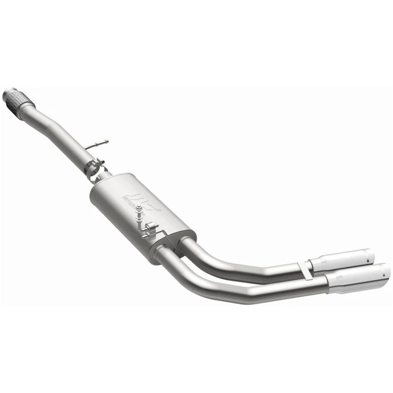 Unleash the true potential of your truck with the MagnaFlow Street Series Cat-Back Performance Exhaust System. This system features a fast-flowing, mandrel-bent 3in. main piping and 1 Straight-Through mufflers ending in a Dual Same Side Before Passenger Rear Tire exit with 3.5in. Polished Welded-On Double Wall Angle Cut Folded Edge tips.