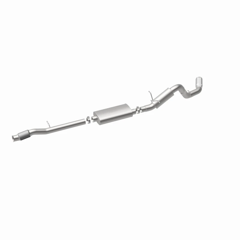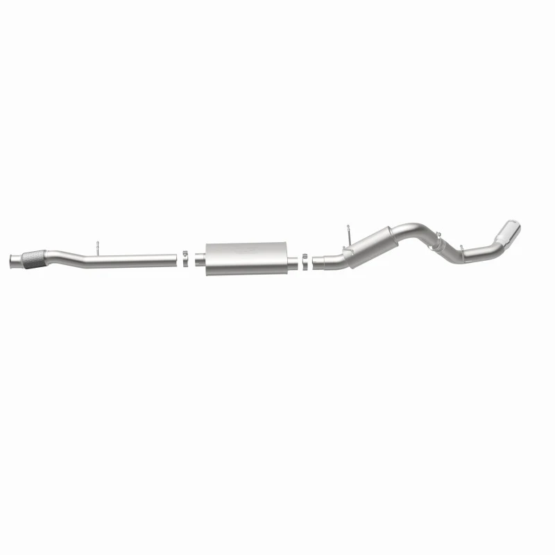 Unlock your truck's full potential with the MagnaFlow Street Series Cat-Back Performance Exhaust System. This system is designed to deliver a powerful engine tone and dyno-proven performance. With its fast-flowing, mandrel-bent 4in. main piping and 2 Straight-Through mufflers, this exhaust kit has the performance chops to match its sporty sound and appearance.