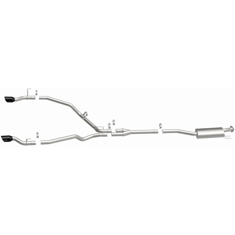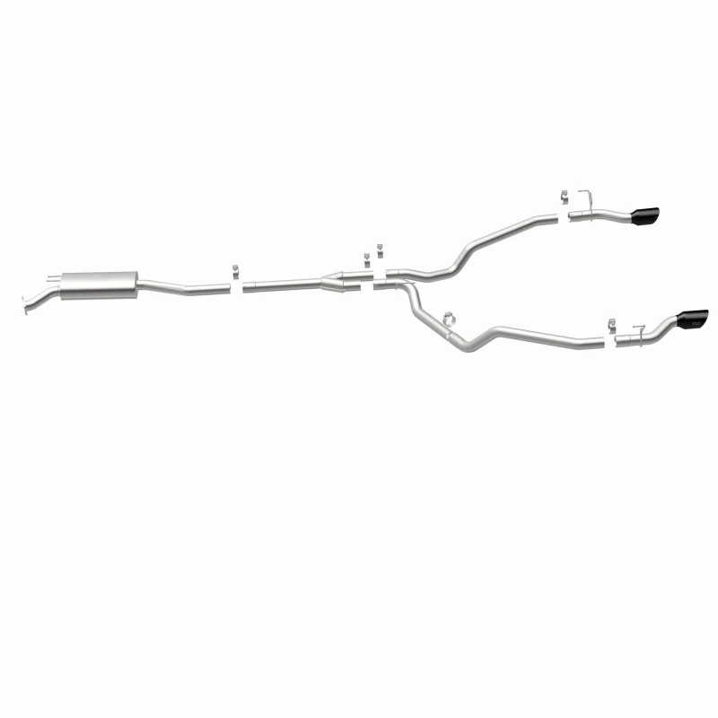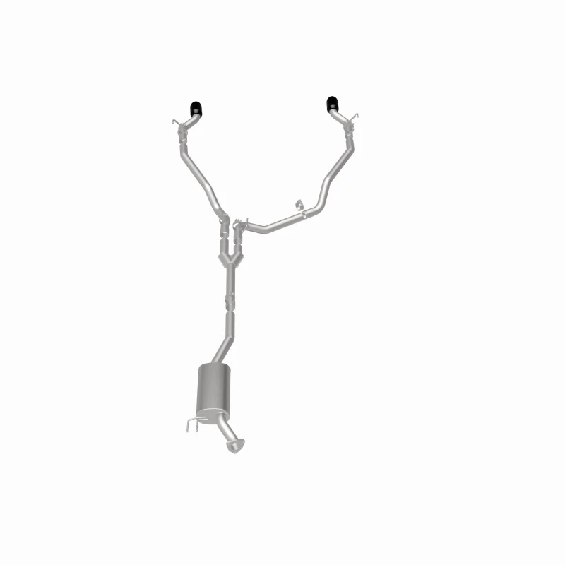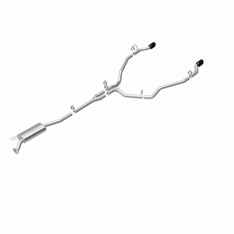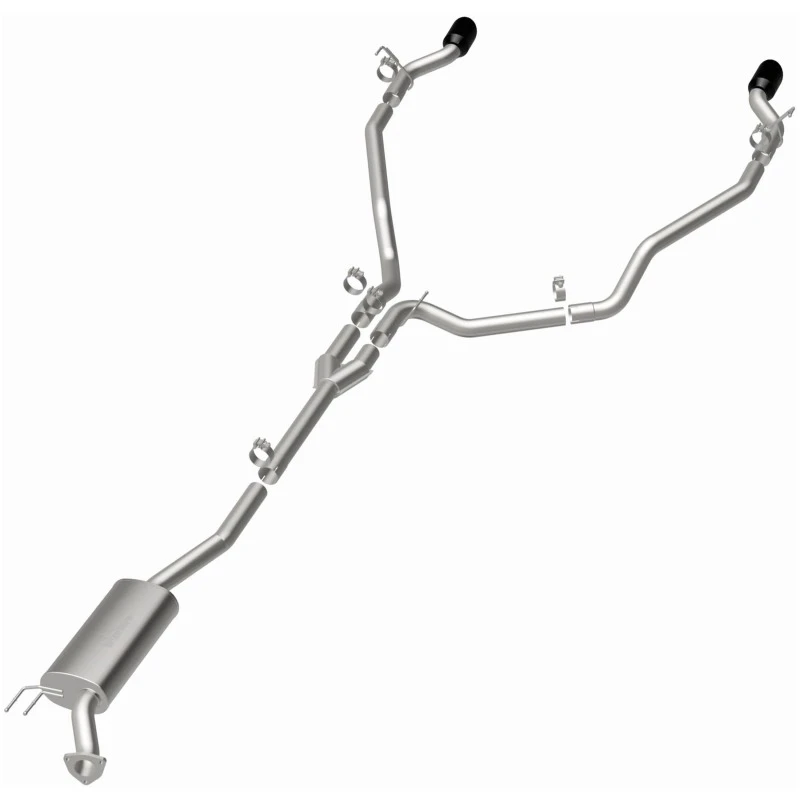 Featuring 2.5" mandrel bent main piping, an 18" oval straight through muffler, and a single-to-dual split rear exit with 4" double wall, angle-cut and logo etched tips finished in black chrome, this exhaust system is built to deliver. Made from durable, corrosion-resistant stainless steel and produced using advanced CNC precision robotic manufacturing techniques, this system is designed for a hassle-free installation and a lifetime of performance.