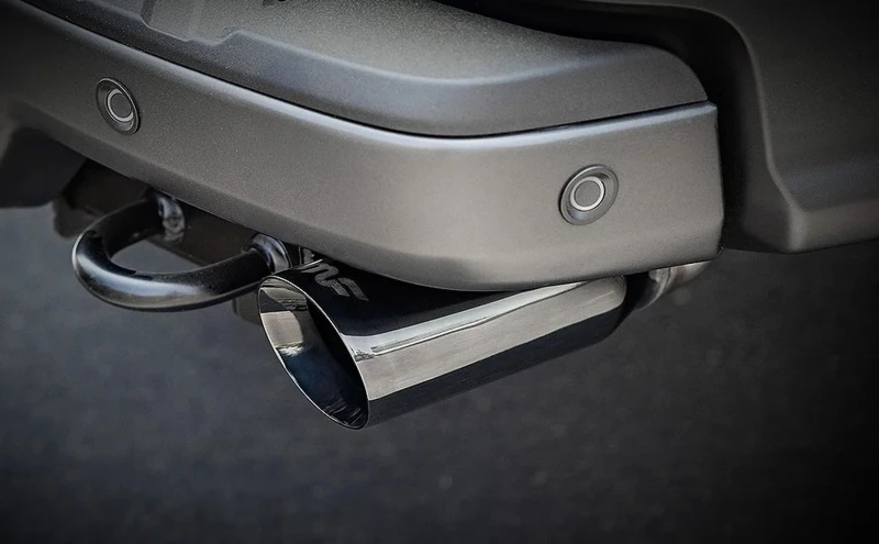 - Dual rear exit with 4in. welded-on double wall angle cut folded edge tips featuring a sporty black chrome finish